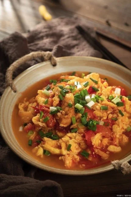 3. Pour the egg mixture into the pan. Stir-fry over high heat until the eggs are half-cooked, then add the scallion sections. Stir-fry briefly and then serve.